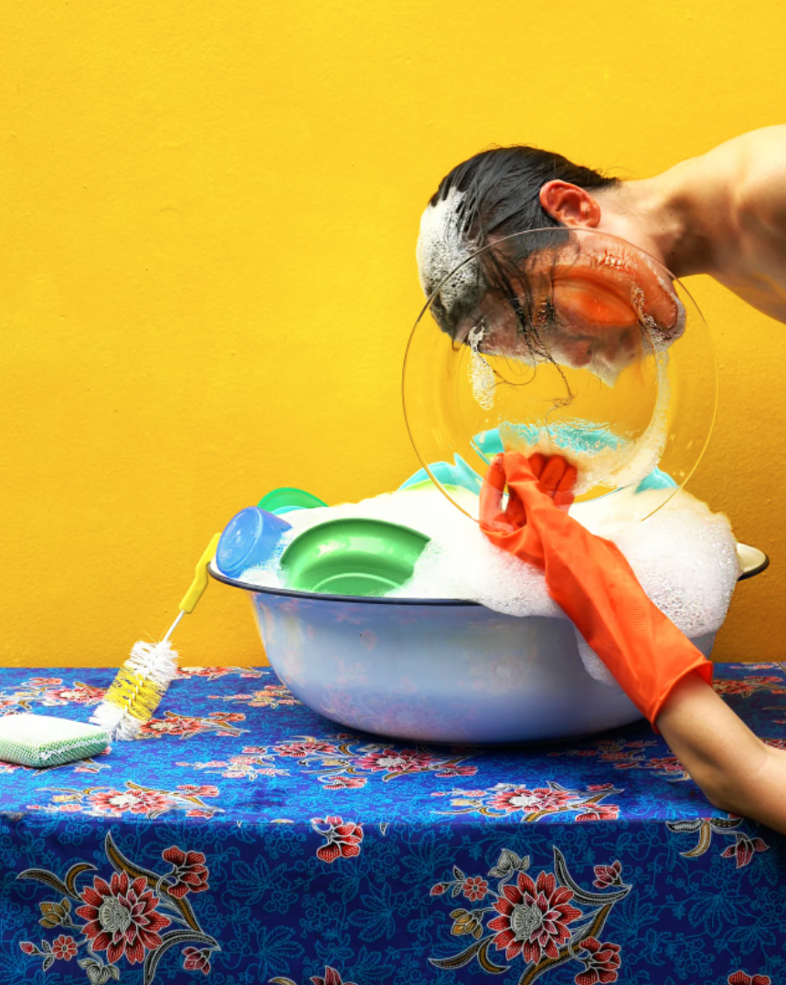 Vatanajyankur undertakes various repetitive and strenuous tasks, turning herself into mechanical tools and domestic objects as she pushes her body to its limits as a testament to human capabilities and female resilience. Drawing from a globalized and digitally networked visual language of consumption and instant gratification, her videos bear semblance to bold and colourful commercial advertisements, only breaking away from their similarities within her constantly recurring moments of physical and emotional discomfort; the result is a body of work that is as strikingly compelling as it is uncomfortable to witness.