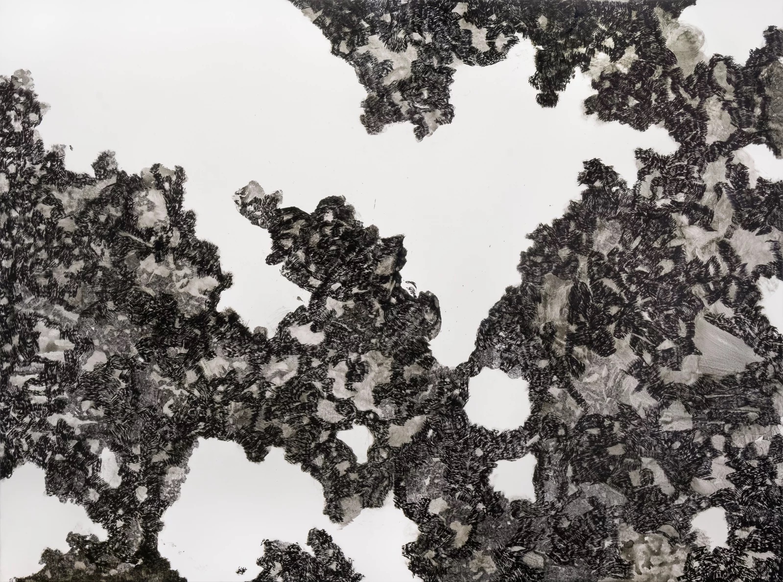 Kemalezedine, ‘Untitled (Scratch Black)’, 2023, acrylic on canvas, 150 x 200 cm. Image from Artsy