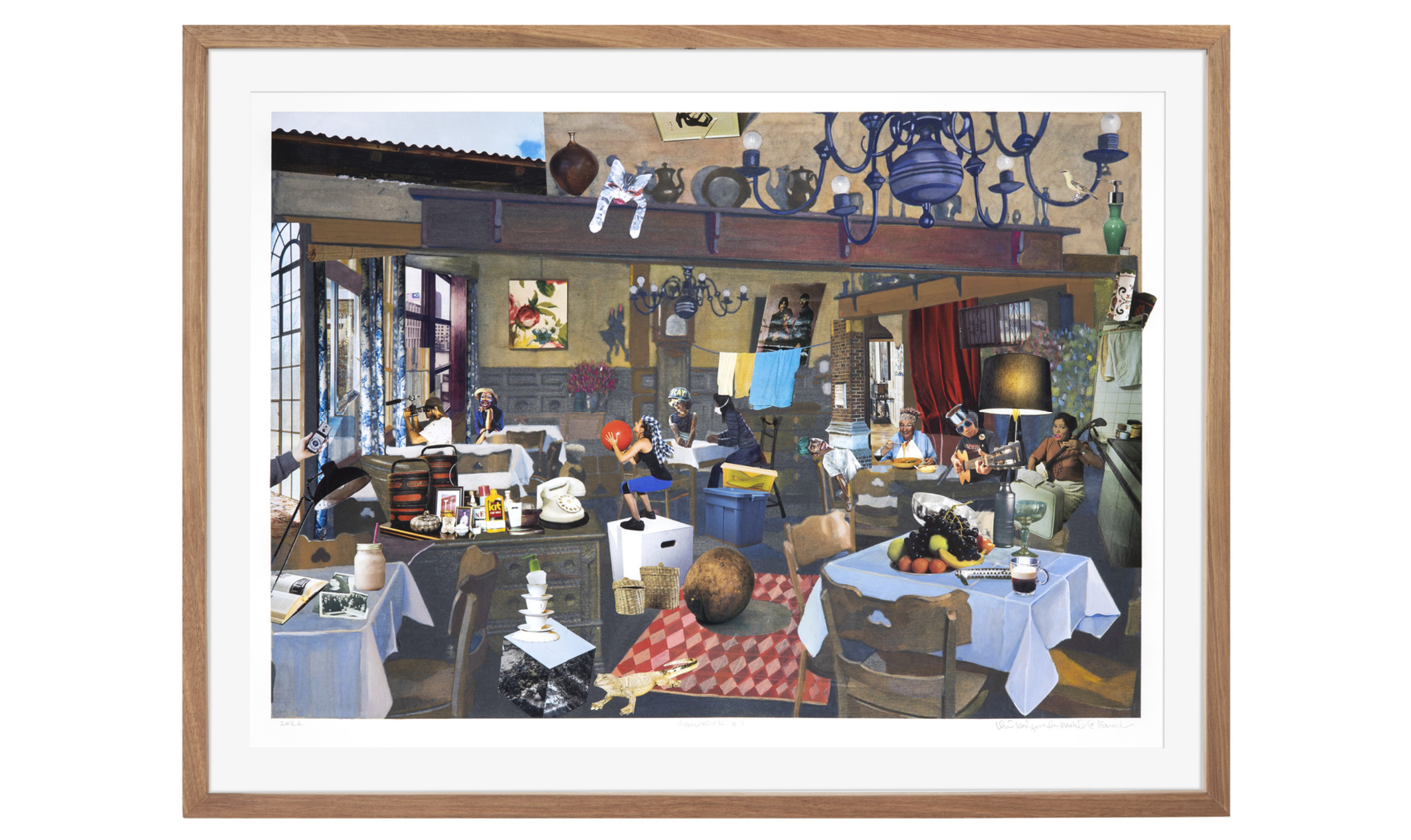 Umibaizurah Mahir Ismail, 'Afterwork #1', 2022, gouache, watercolour, collage on watercolour paper, glass, and wood frame, 66 x 85 cm. Image from Artsy