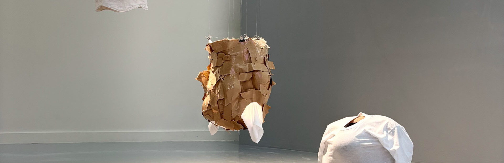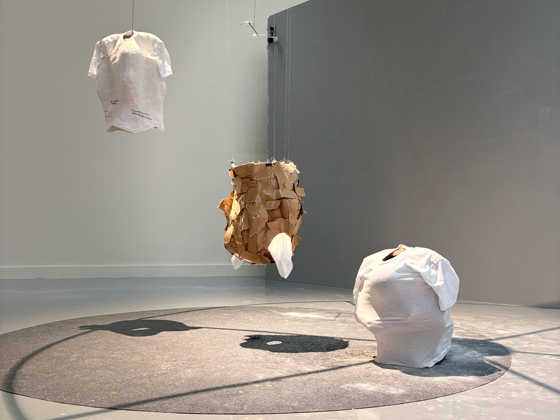 The Bangkok Art Biennale version combines performance and installation work plus the process of sculpture-making in which I invite the audience to write/draw their concerns, hopes, and beliefs about Myanmar’s spring revolution and its citizens. The material I used for making the sculpture was a plaster bandage, which is used to fix broken things and refers to Myanmar society’s need to be fixed. The three days of five hours of durational performance work resulted in three T-shirt sculptures to be shown for the entire Biennial period. The number three refers to the three fingers of our Spring Revolution sign. Also, our Spring Revolution has been over three years, and we are still fighting with the military junta.