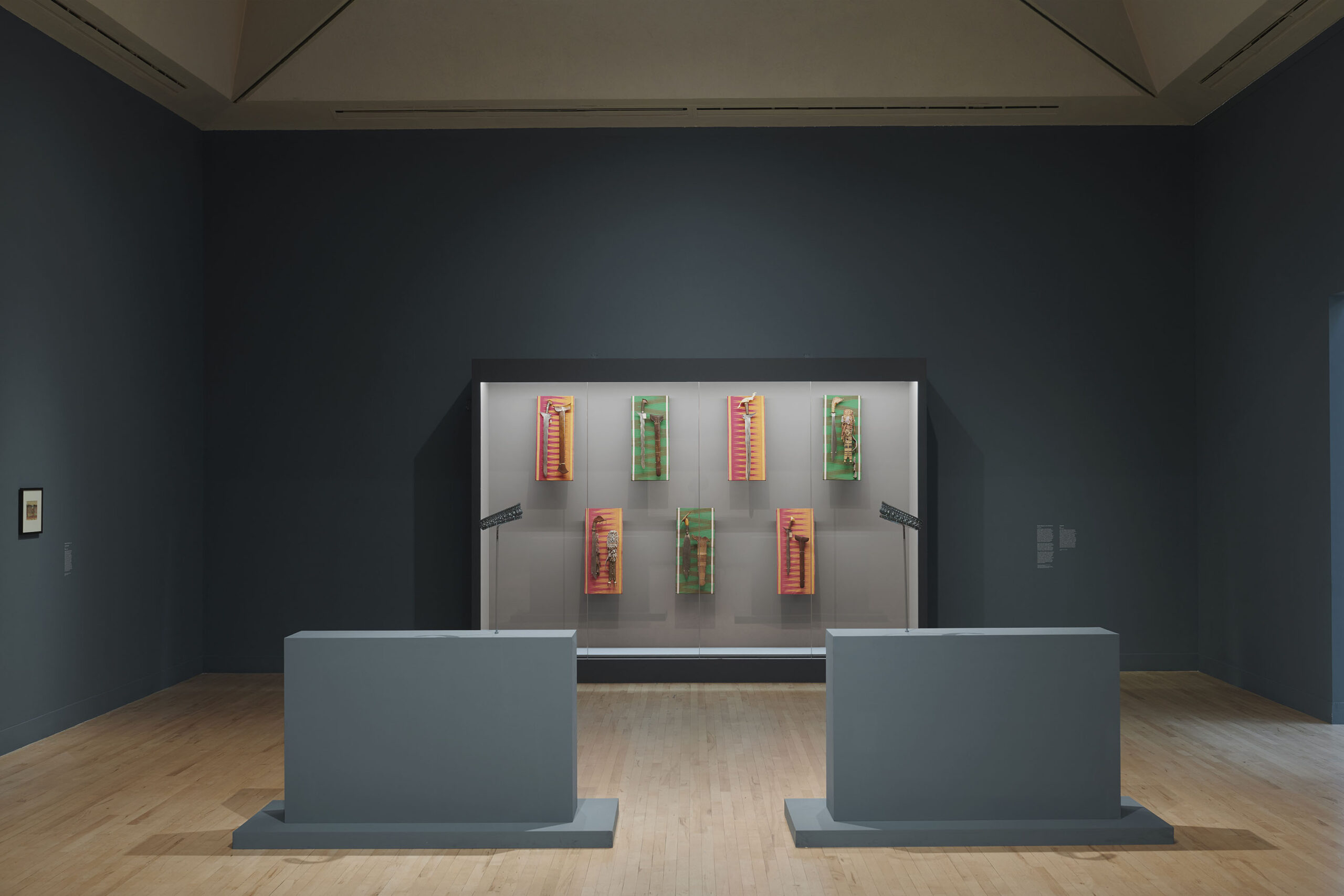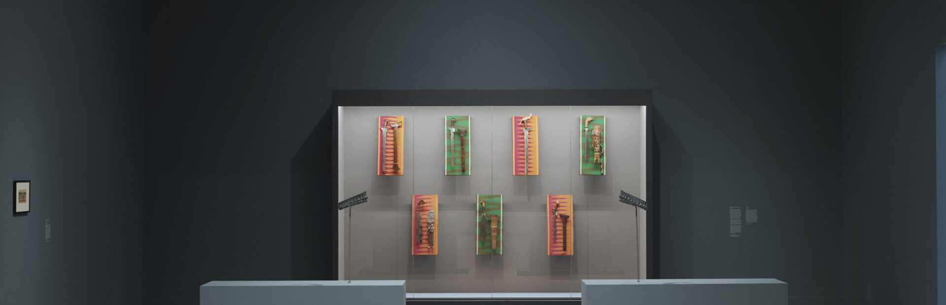In the exhibition, I borrowed bladed weapons from the British Museum and the Pitt Rivers Museum that have never been exhibited since accession and displayed them against contemporary fabrics from Mindanao made by a collective named Sinagtala, a group of weavers who came together during the bombing of the city of Marawi in 2017. Outside the Philippines, little is known about the siege of Marawi in 2017, when the national government under then-President Rodrigo Duterte, aided by the US military, rained bombs on the northwestern Mindanao city of Marawi, in a quest to capture a militant group affiliated with Islamic State. The conflict levelled the entire city and devastated hundreds of thousands of lives. The women of Sinagtala wove as the bombs fell. The jagged motifs on the traditional fabric represent the tremors that reverberated around the weavers.