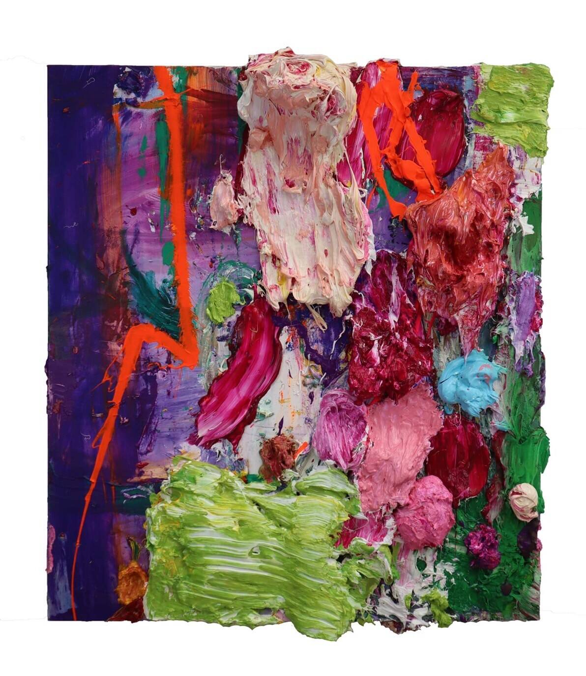 Chayanich Muangthai, also known as Seafear, is fascinated by the tactile qualities of paint and its ability to convey her message of the beauty of change and belonging. Her paintings create an illusion of motion and transformation, featuring heavily layered acrylic and polymer applied with modified piping bags, construction tools, and her hands. Seafear’s signature technique produces nuanced metaphors of the human condition, with compositions ranging from floral to Thai landscapes.