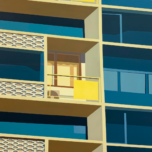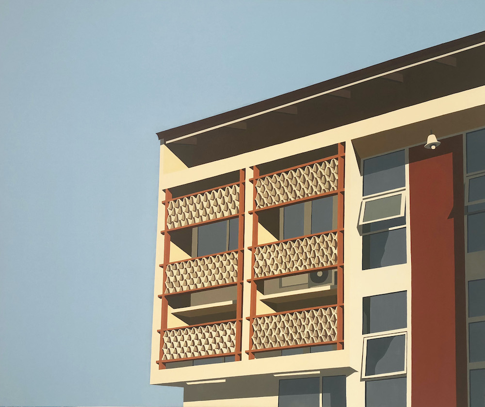 Using Bangkok as his visual library, Chayapong Charuvastr finds his imagery from what he calls “neglected architectural gems”. The passerby in the street is merged with the passerby of the painting. The building becomes the point where the here and now merges with the past and the future.