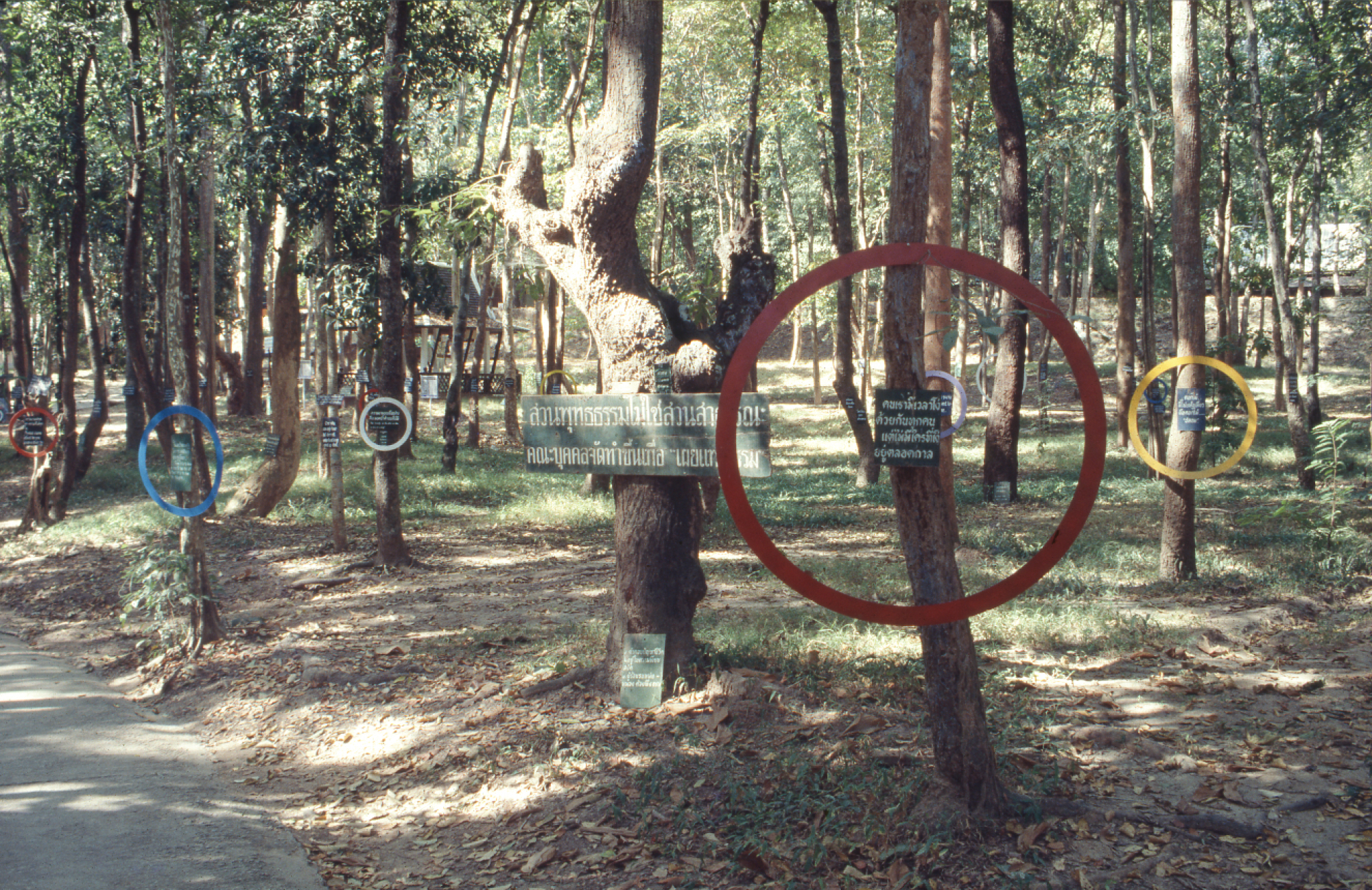 Each CMISI project ran for three months or so and emerged against a backdrop of perceived conservatism within the mainstream Thai art scene, centred in Bangkok. CMSI instead sought a radical engagement between artists and the public. Temples, a morgue and homes were used as project sites, among other spaces in the city. Directions of street signs were changed to suggest newer understandings, a sculpture was made and then incinerated, and a soapbox was prepared for anyone to speak without fear of arrest. E.I. (Exchanging Thoughts) (1995-96) was an event in which objects made by artists outside Southeast Asia were exchanged for objects from the locals.
