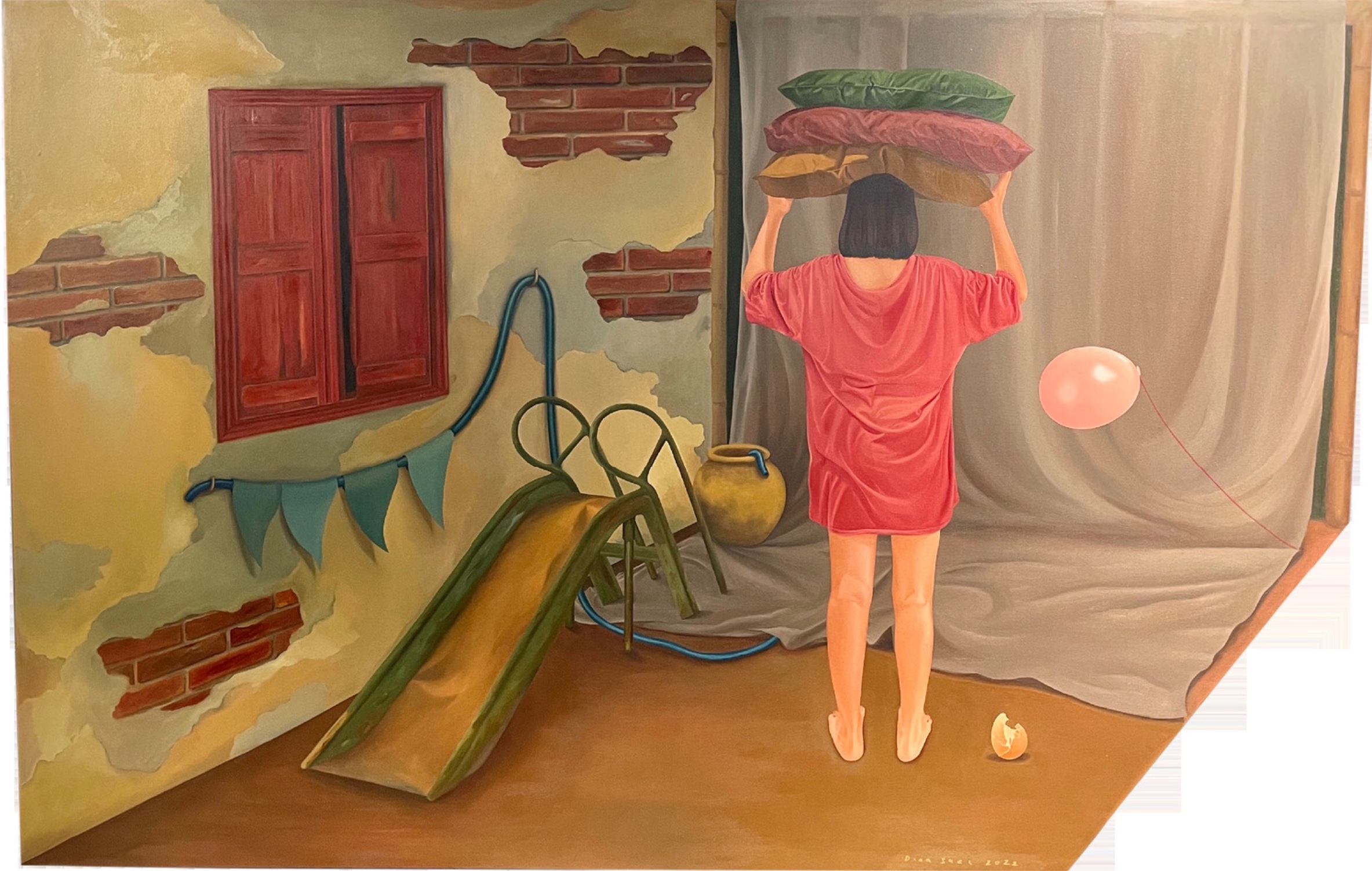 In 2009, Dian graduated with a Bachelor’s Degree in Architecture from the Indonesia Islamic University in Yogyakarta, Indonesia. She has participated in group exhibitions including ‘On Connectivity’ at Kohesi Initiatives (2022); ‘Broken White Project: Tropenwelle’ at Mizuma Gallery (2022); and at Biennale Jogja XV Equator: ‘Do We Live in the Same Playground’ at Jogja National Museum (2019). In 2021, Dian was awarded the Gold Winner in the Established Artist Category at the UOB Painting of the Year Indonesia.