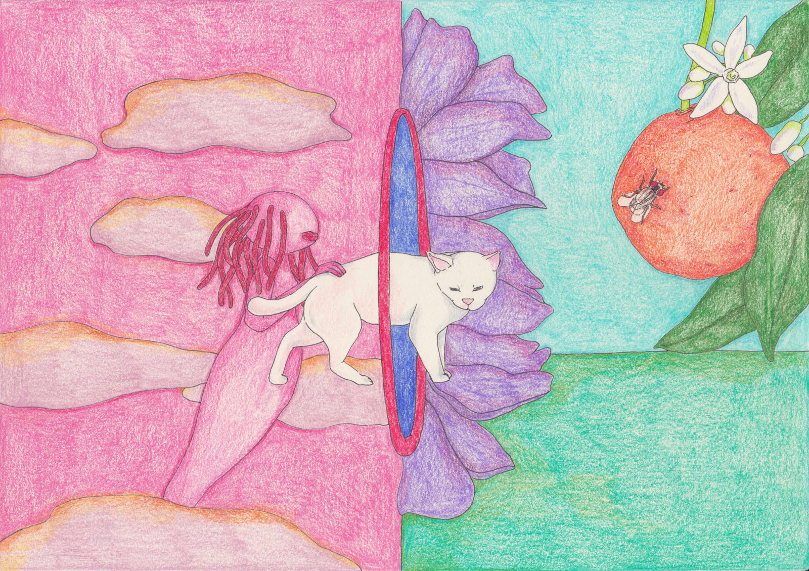 Her current practice is a world building exercise involving recurring amorphous creatures that live in the realm of fantasy, working with fragmented narratives that navigate through the process of introspection that are informed by her surroundings and experiences- whether in reality or in dreams. She enjoys combining influences from science fiction, fantasy and myths to create drawings of stills in her ideal phantasmic world and writing short stories of them.