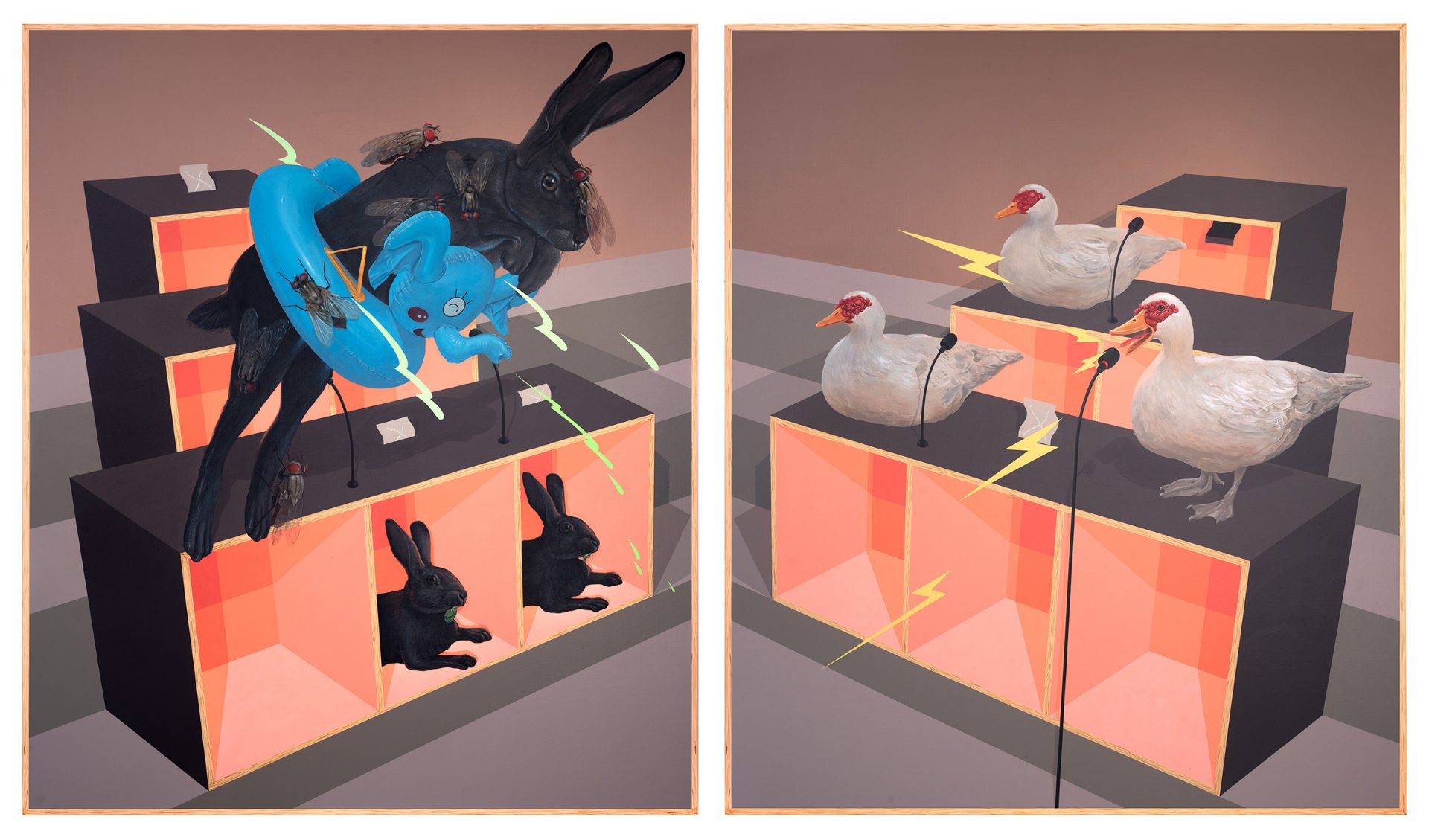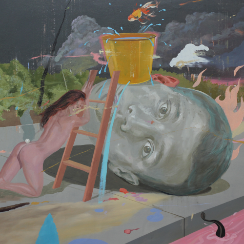 Rather than being inspired by a certain space or place, Hisyamuddin finds that his work changes according to the different phases of his life. For example, when he was in school and felt homesick, his work would reflect that sense of longing for home. His creations then focused on family bonding, particularly exploring his relationship with his father. ‘But now as I begin to live my own life in society, my work tends to have more emphasis on current issues that affect the people of Malaysia at large,’ he reveals. His work is based on pop realism, using figurative language as a narrative device to express his ideas. The concepts he prefers to explore tend to revolve around the world around him, from personal experiences to national events. Hisyamuddin believes that an artist’s creativity and the view they try to share with the world will only be meaningful if it’s based on reality.
