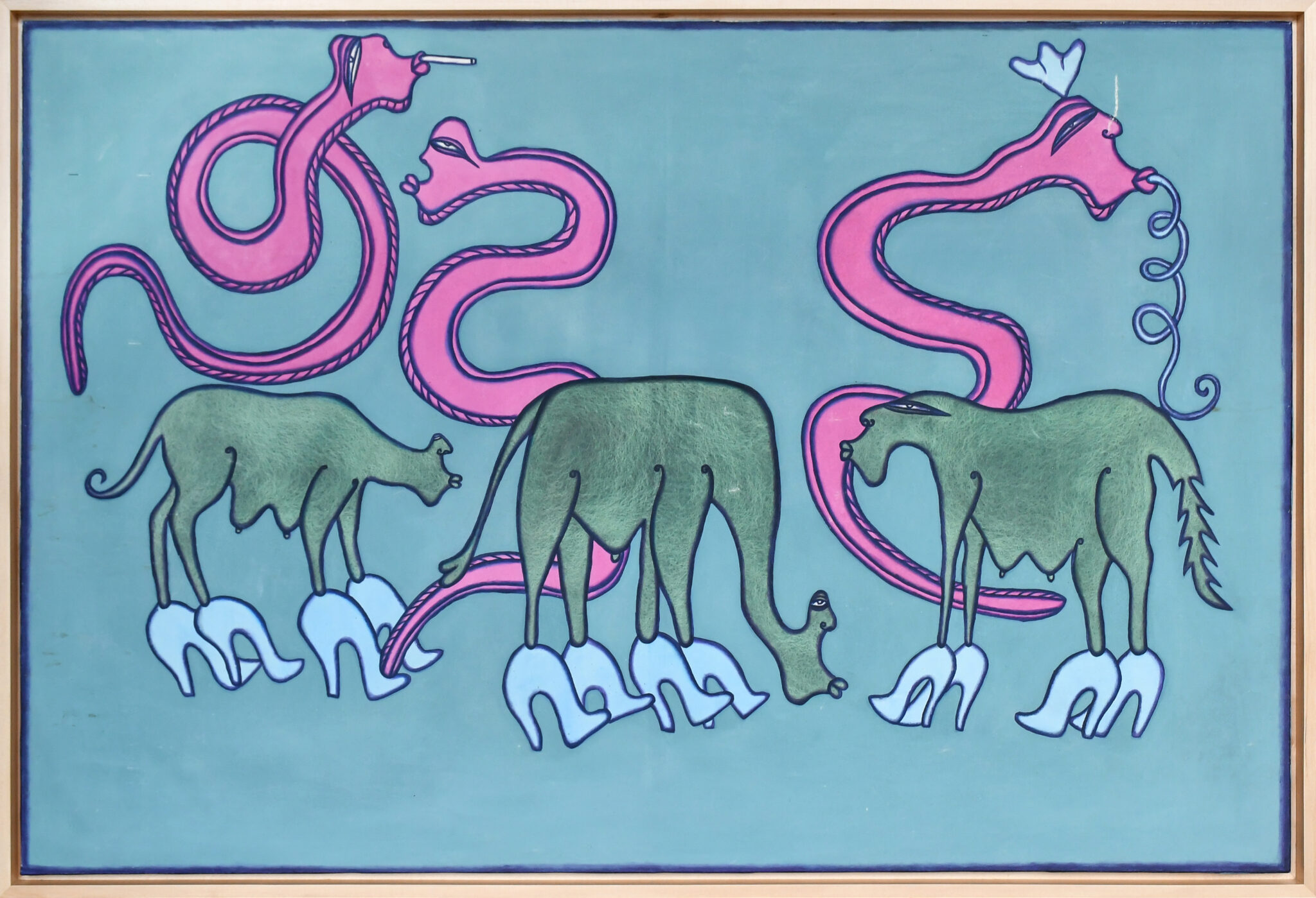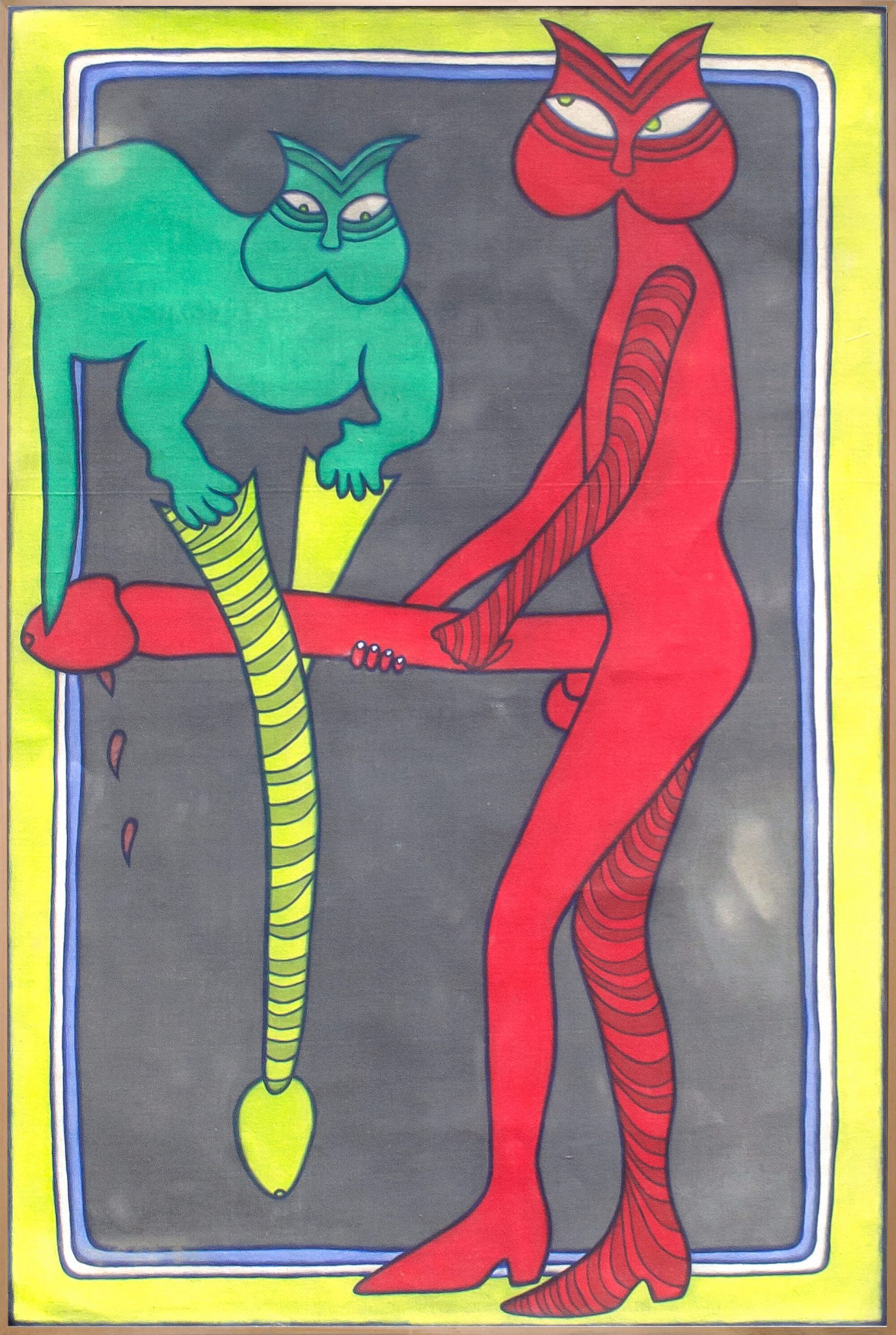 I Gusti Ayu Kadek Murniasih’s vision is often labelled as disturbing and deeply biographical, yet there is also humour and pathos that we can see throughout her paintings. Murni’s prolific artistic career was cut short due to her illness and subsequent death in 2006.