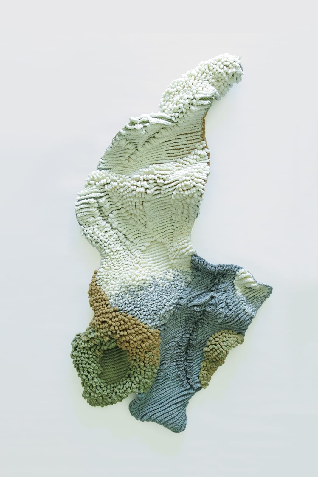 Kelly Jin Mei, 'A Valley, A Ravine, A Powdered Hillside (Landscapes)’, 2019, Crocheted nylon yarn and wire mesh, 90 x 80 cm. Image courtesy of the artist