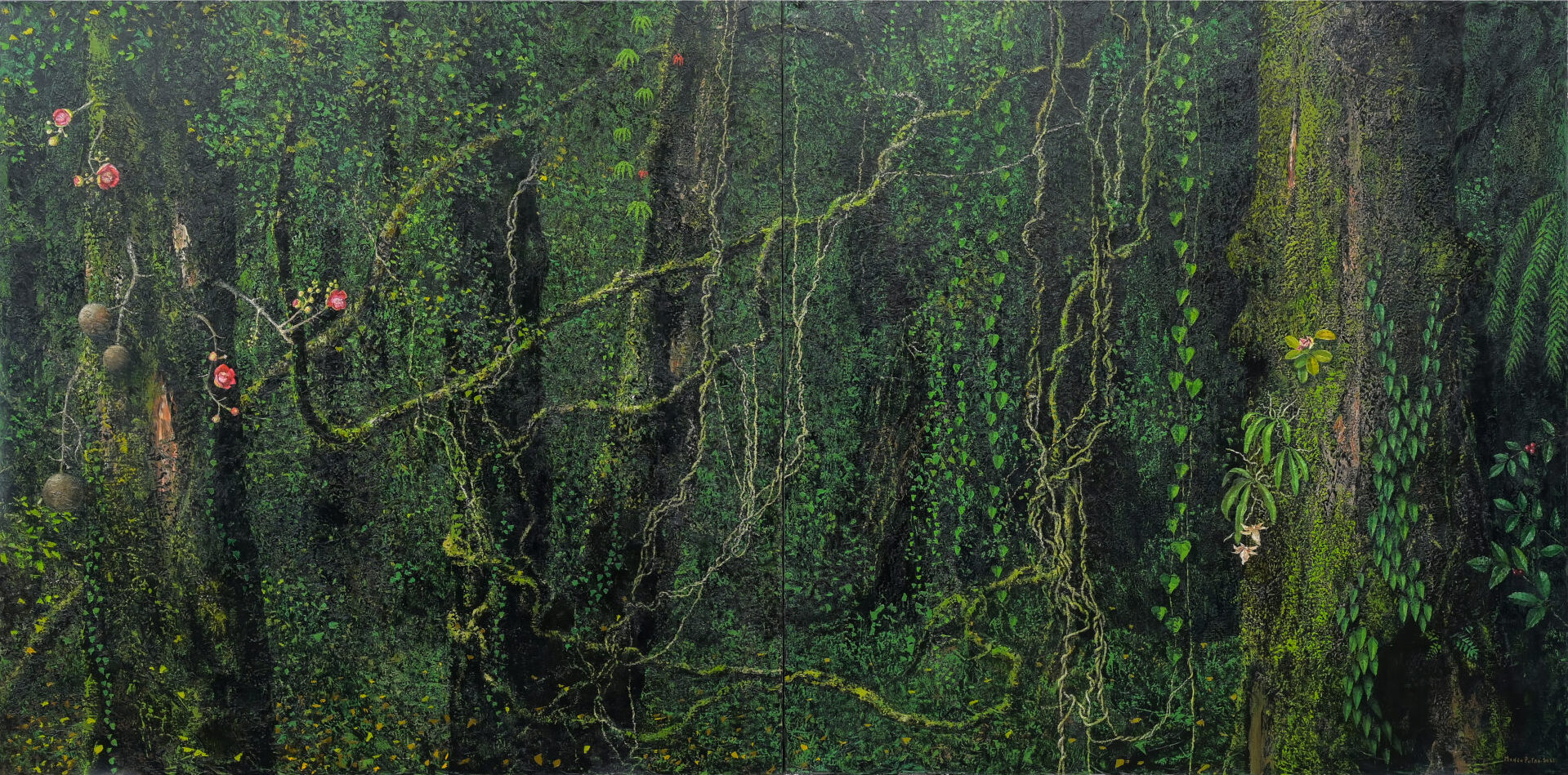 Mangu Putra, ‘Rimba (Jungle)’, 2021, oil on linen, 200 x 400 cm. Image from Ocula