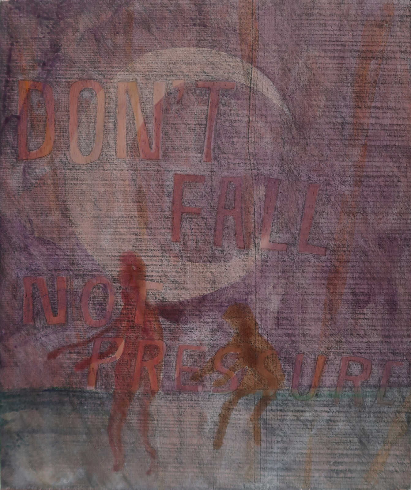 Mengju Lim, 'Don't Fall not Pressure', 2021, acrylic paint, gesso and graphite on jelutong, 30.6 x 25.2 x 2.1 cm. Image from Artsy