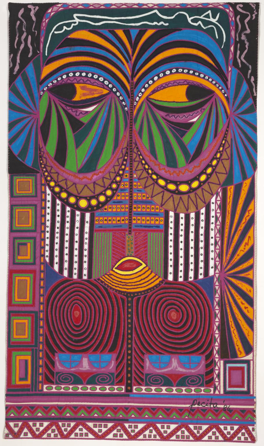 Pacita Abad was the daughter of a congressman, who had hoped that she would traverse a similar political path. But, the course of Pacita’s life changed after she started her law studies and begins organizing student demonstrations in Manila opposing the Marcos regime and protesting fraudulent elections in Batanes. Her family was targeted and their home in Manila was sprayed with bullets. Because of the increased political violence in 1969 her parents urged Pacita to leave Manila and finish her law degree in Spain. On the way to Europe she stopped to visit a relative in San Francisco and decided to study in America. The move was a huge cultural shock for Pacita, as a sheltered Asian Catholic girl she plunged into the vibrant city scene bursting with racial and religious diversity, drugs, music and political protests. Pacita embraced the exhilarating experience while continuing with her graduate studies. She then met and married artist, George Kleiman, who introduced her to painting and the San Francisco art world. The relationship was short-lived, and in 1973 she decided to spend a year traveling by land across Asia with Jack Garrity, a development economist. Pacita’s trip across Asia to the Philippines through Turkey, Iran, Afghanistan, Pakistan, India, Sri Lanka, Myanmar, Thailand, Laos, Taiwan and Hong Kong drastically changed her life and career plans, as she decided to take up painting instead of law. Married to Garrity, whose work predisposed them to travel to numerous developing countries, her experiences in each place informed her subject matter from the beginning. Traditional art practices like ink-brush painting in Korea, paint brushing the Dominican Republic, batik making in Indonesia, tie-dye in Africa, mirrors in India, shells in Papua New Guinea, were all techniques she introduced either singly or several in one art work. In the late seventies and early eighties Pacita introduced a quilting method trapunto onto her canvasses, which were then layered with objects on top of her quilted material: stones, sequins, glass, buttons, shells, mirrors, printed textile. She referred to this technique, and the process of layering, stuffing, stitching and the collaging of objects on painted canvas as trapunto painting. Characterized by vibrant colour and accumulated material, these large scale trapunto paintings traverse a diversity of subject matter: from tribal masks and social realist tableaus depicting the individuals and communities that Pacita encountered throughout her travels, to lush and intricately constructed underwater compositions and abstractions. She lived and travelled in a bewildering amount of countries – from Bangladesh to Sudan, Bangkok to Manila, Jakarta to Yemen, Washington D.C. to Singapore – and it is this itineracy that has defined and shaped her subject matter. Pacita’s work brought together images and experiences across cultures, economies and histories and offered reflections on the global long before the discourses of globalization and transnationalism were felt in the art world. She died in Singapore in 2004. However, the Pacita Abad Estate ensures that her works in still seen in exhibitions globally.