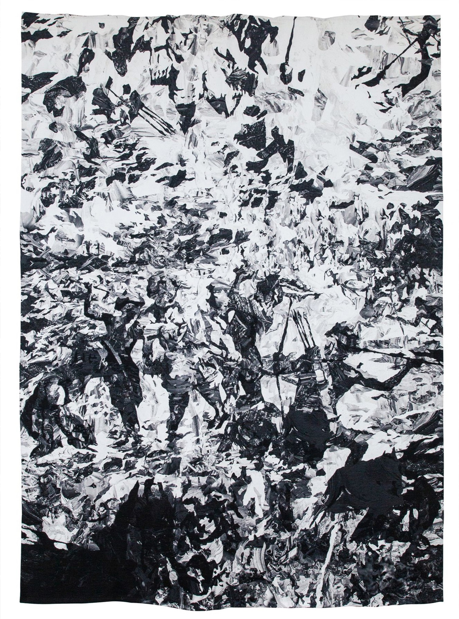 Patricia Perez Eustaquio, 'Death of Magellan (After Amorsolo)', 2019, digitally woven tapestry in cotton and wool, 410 x 292 cm. Image from Silverlens Galleries