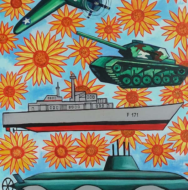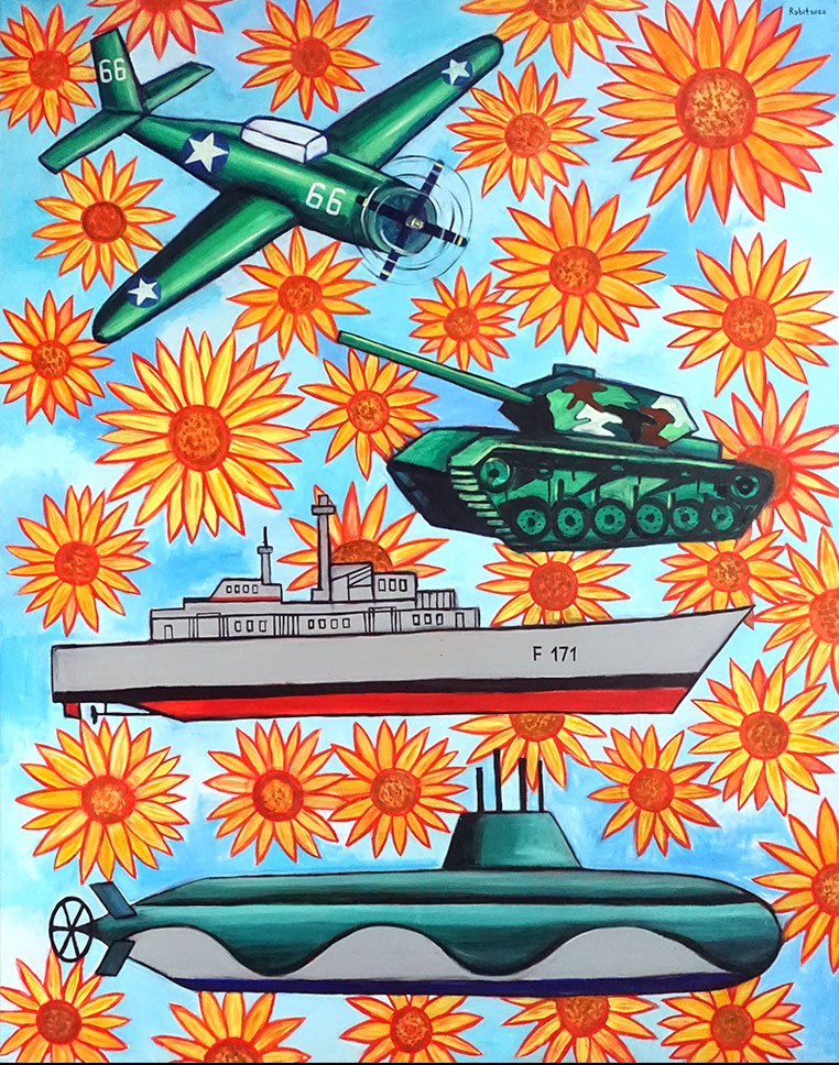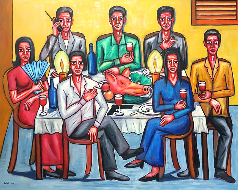 Pen Robit’s work attempts to represent Cambodia’s past, present and future socio-political fabric. He draws influences from Cambodian cultural iconography as well as ongoing societal discourses.